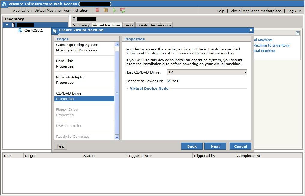 ホスト側に接続している物理的なCD/DVDドライブを使用するとしました。